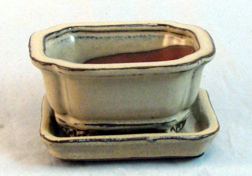 Small Ceramic Bonsai Pot plus Saucer - Beige - 4" x 3 3/8" x 2" Review