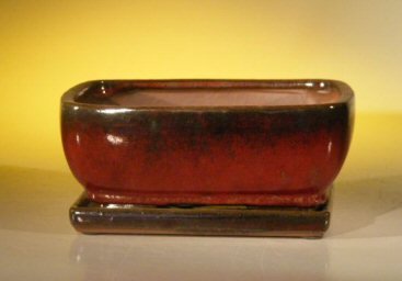 Bonsai Boy's Ceramic Bonsai Pot With Attached Humidity Drip tray- Rectangle 8 5 x 6 5 x 3 5