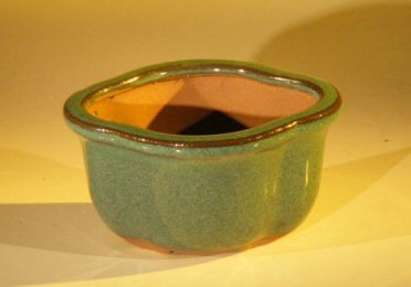 - Green bonsai pot, glazed irregular oval